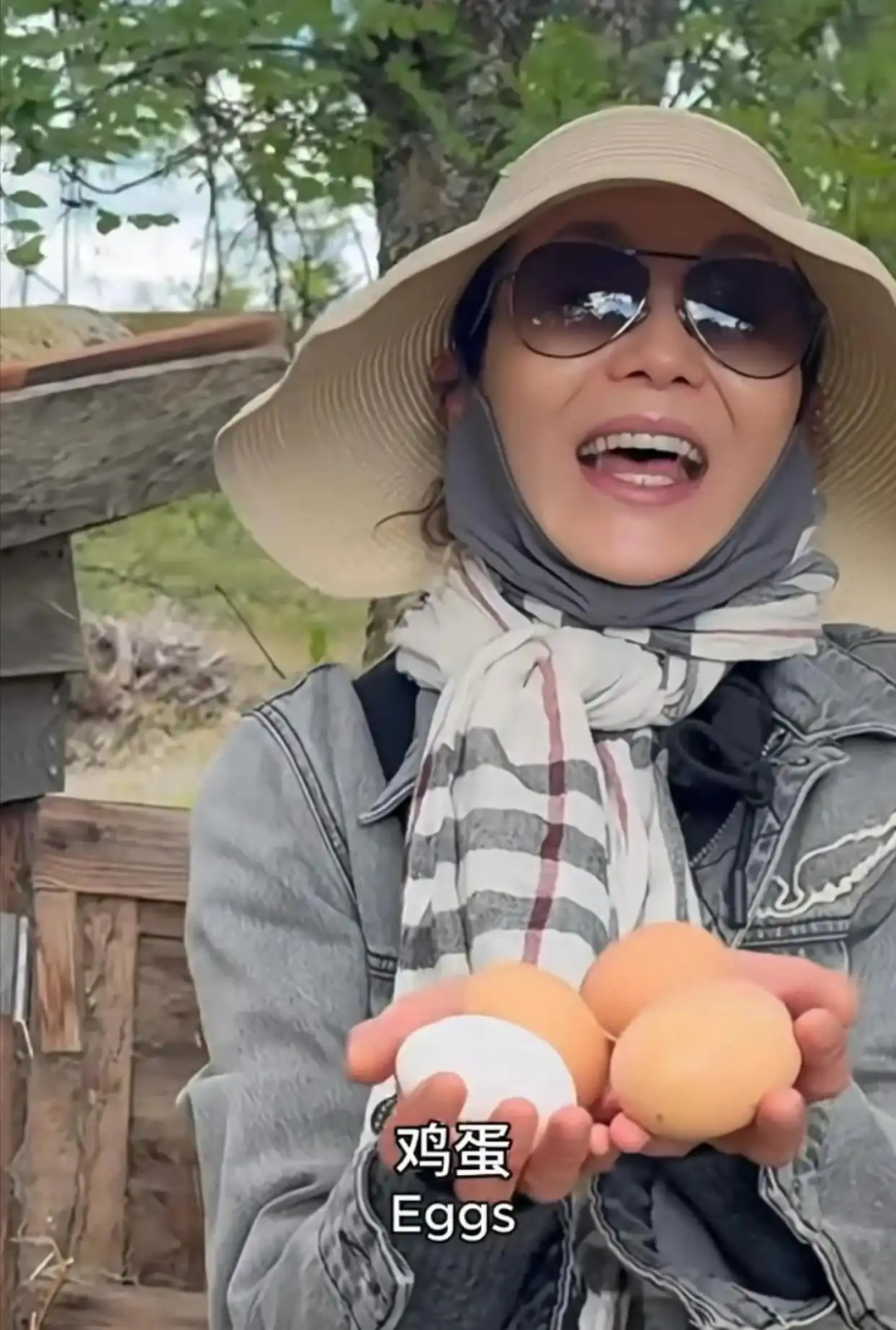 视频中,张曼玉猫着腰钻进鸡舍,小心翼翼从窝里捧出还带着温度的鸡蛋,并塞了两个进裤兜,对鸡妈妈说“谢谢”。她在视频简介中写道:在城市里只会觉得鸡蛋是日常的食物,可在这,每一次来捡鸡蛋时,都会觉得很幸福,也很感恩。